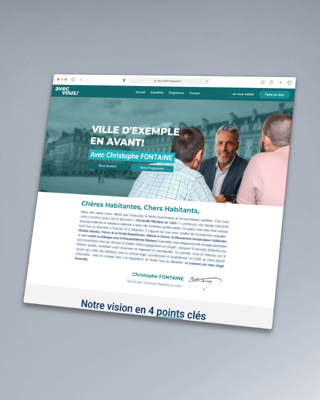 Offrez à votre candidature une vitrine digitale moderne et efficace pour présenter : programme, équipe, actus pendant toute la campagne.