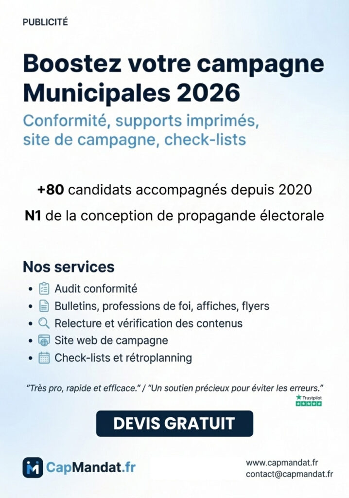Si vous cherchez un “mémento candidat municipales 2026” enfin utilisable, téléchargez la bonne version CapMandat.fr (moins de 1 000 ou 1 000+), puis faites une première passe “rétroplanning + checklists”.